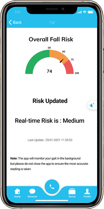 It predicts health risks, detects falls, and gives caregivers real-time insights to support safer, independent living.